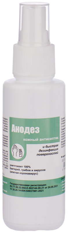 Антисептическое средство Анодез представляет собой бесцветную прозрачную жидкость со спиртовым запахом. Может применяться как кожный антисептик, так и экстренное дезинфицирующее средство для обработки поверхностей. Разрушает на поверхности биологические пленки, обладает очищающими и дезодорирующими свойствами, облегчает и ускоряет удаление жировых и пигментирующих загрязнений (в том числе застарелых) на обрабатываемых поверхностях. Имеет пролонгированное антимикробное действие в течение 4 часов. Не требует смывания после обработки.