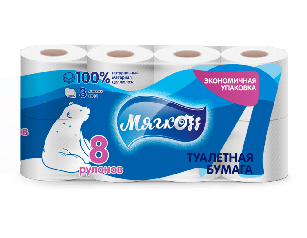 Бумага туалетная трехслойная Мягкоff №8