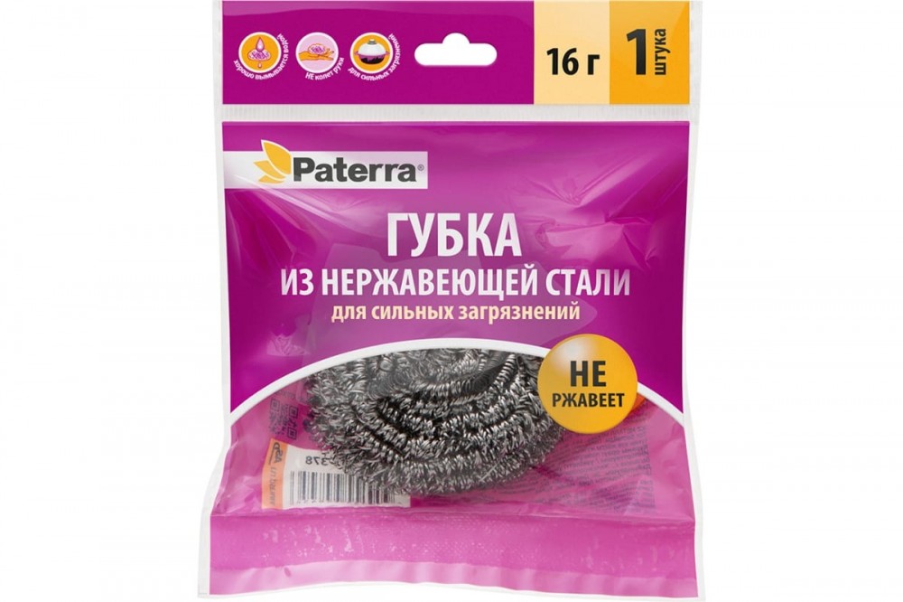 Описание: металлическая губка, изготовленная из нержавеющей стали, предназначена для жесткого мытья сильнозагрязненной посуды. Губка не покрывается ржавчиной после контакта с водой. Плотное плетение волокна намного увеличивает срок службы губки. Волокно не ломается в процессе использования, не колет руки. Губка не теряет свою форму в процессе использования. Губка металлическая отлично вымывается водой, в ней не застревают остатки пищи. Вам будет приятно взять губку в руки даже после длительного использования. Внимание! Не подходит для деликатных поверхностей.