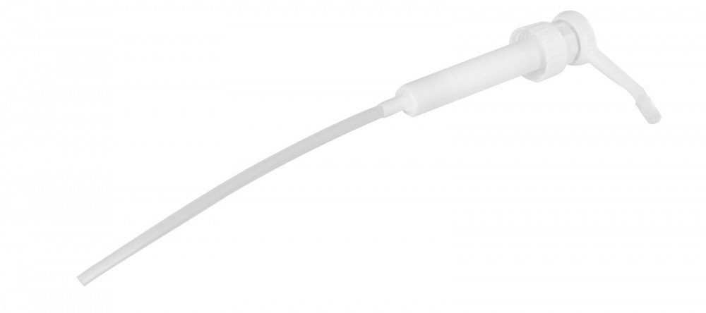 Длина внутренней части дозатора, находящейся внутри емкости, без учета горловины, составляет 360 мм. Включает часть тела дозатора, где находится помпа, и трубку, присоединенную к ней. Трубку можно укоротить (обрезать).