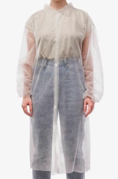 Одноразовый халат производится из гипоаллергенного, мягкого и легкого, но прочного материала – спанбонда. Водонепроницаем, не пропускает пыль и вредные микроорганизмы. Не требует стирки и сушки, подходит только для одноразового использования.
