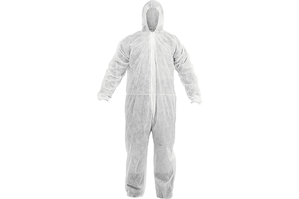 Одноразовый комбинезон из нетканого материала спанбонд с центральной застёжкой на молнию. Рукава и капюшон на резинках, для лучшей защиты от загрязнений рук и головы. Применяются в пищевой, химической промышленности и при работе с красящими веществами.