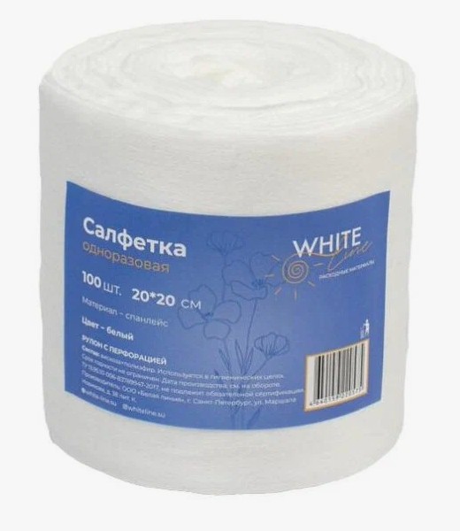 Полотенце (салфетка) 20х20 В РОЛИКЕ бел White line №100