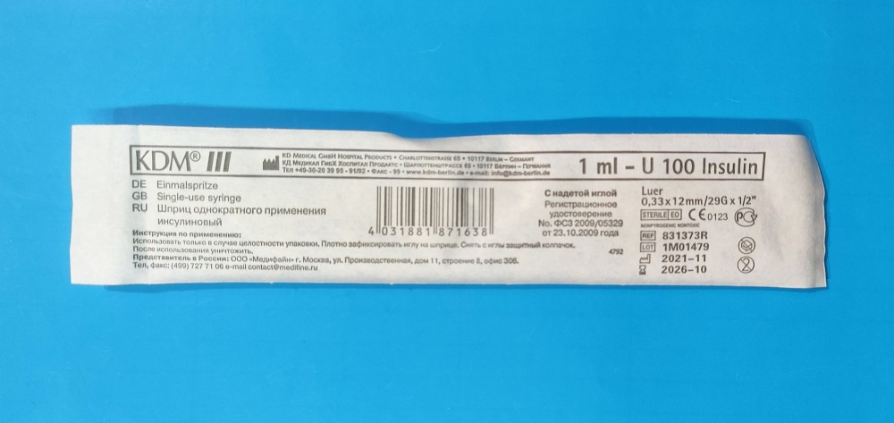 Шприц КDМ 1 мл. 3-х комп. U-100 G29(0,33х12,7)