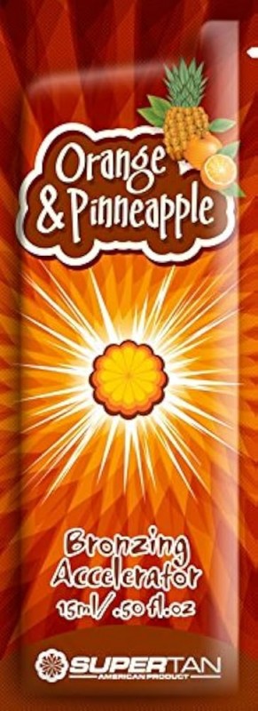 Крем-ускоритель загара Orange and Pineapple от бренда Supertan для использования в солярии с алоэ вера, натуральными бронзаторами и ускорителями загара. Такие акселераторы как L-тирозин и протеины меди обеспечивают ускорение процесса загара и способствуют получению глубокого, темного загара. Масло апельсина, входящее в состав средства, успокаивает и восстанавливает кожу, придает упругость и снижает воспалительные процессы. Крем позволяет приобрести красивый натуральный загар и оставляет на коже аромат апельсина и ананаса.