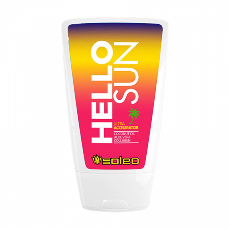 Ультра ускоритель загара в солярии Soleo Hello Sun с маслом какао увлажняет и тонизирует кожу, обеспечивает быстрый и ровный загар. Предотвращает проявление воспалительных процессов кожи и защищает от фотостарения.
